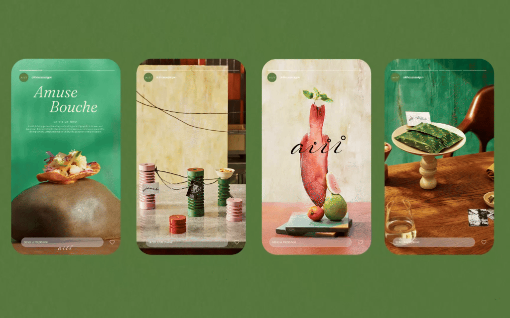 With this first Tasting Menu making the first and most significant impression on diners, we decided that 12 images featuring the menu had to captivate viewers at first glance. Notably, all followed a distinctive direction that was more inspiring and aligned with the DNA of Aiii House, especially in the context of current fine dining brands focusing on educating about two main messages: "Farm to Table" and "Embracing Local Ingredients”.