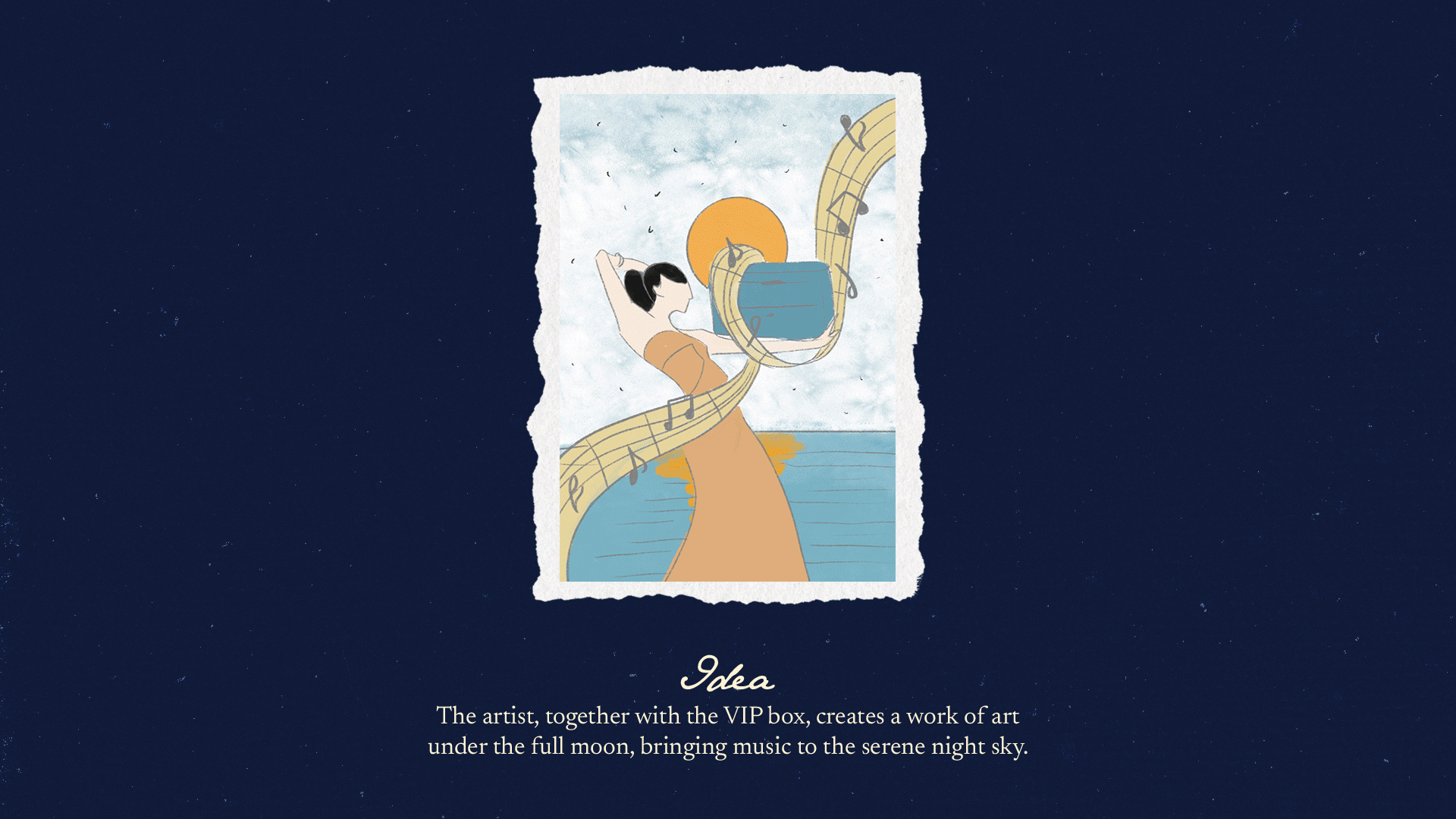 The artist, together with the VIP box, creates a work of art under the full moon, bringing music to the serene night sky.