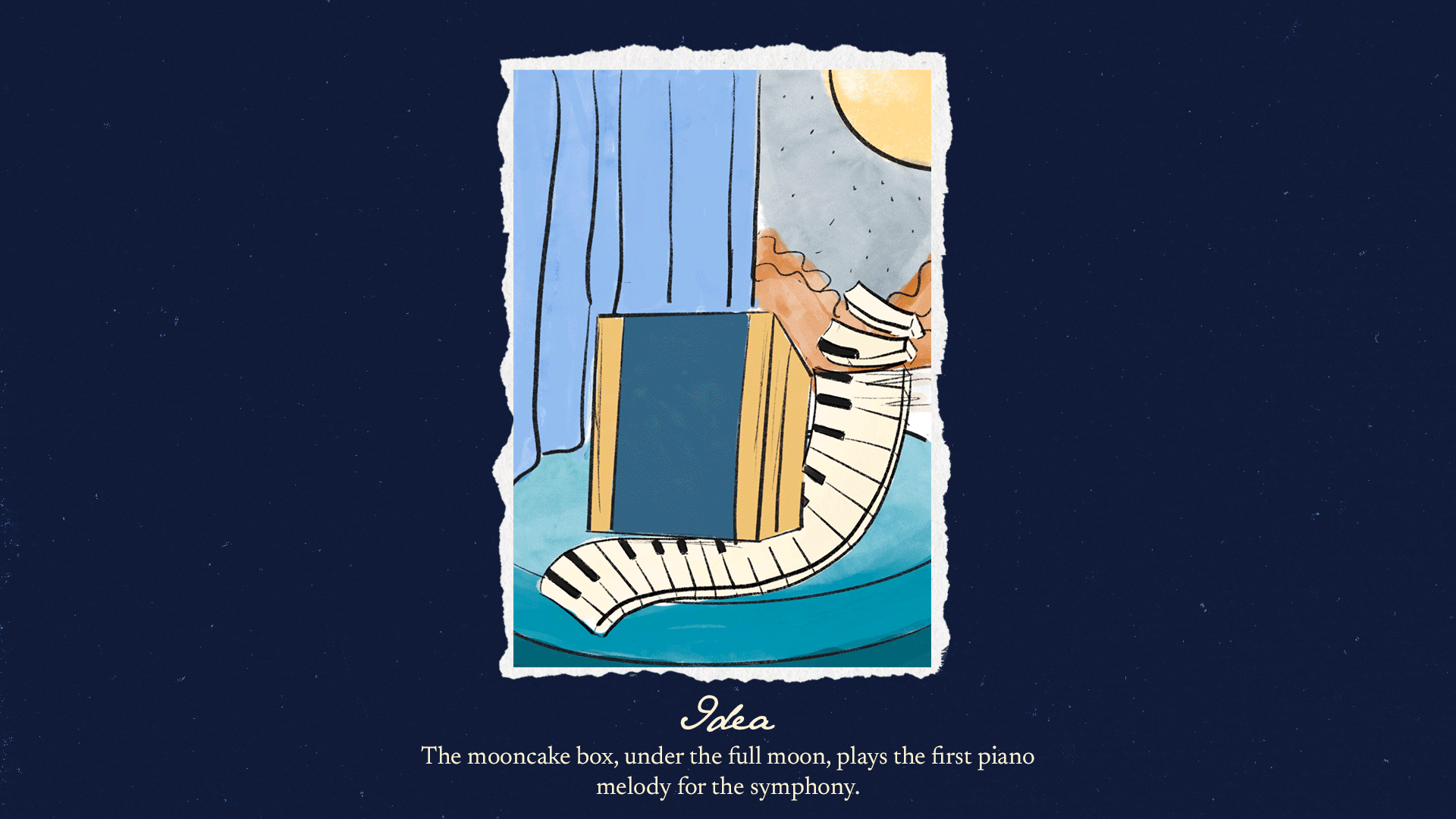 The mooncake box, under the full moon, plays the first piano melody for the symphony.